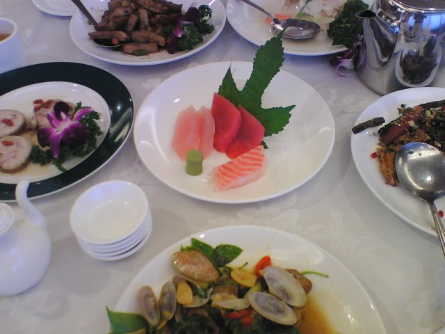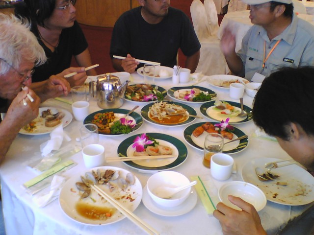 次から次に運ばれてくる料理の数々。台湾の一般料理のようなどぎつい香味材料を使わず落ち着いた味付けでした。