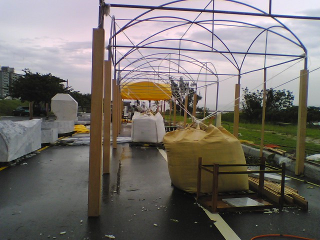 風がとても強くなってきて、会場の催し物のテントが多く倒壊しました。