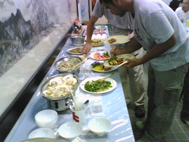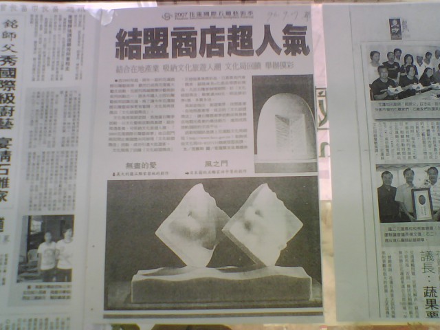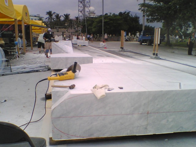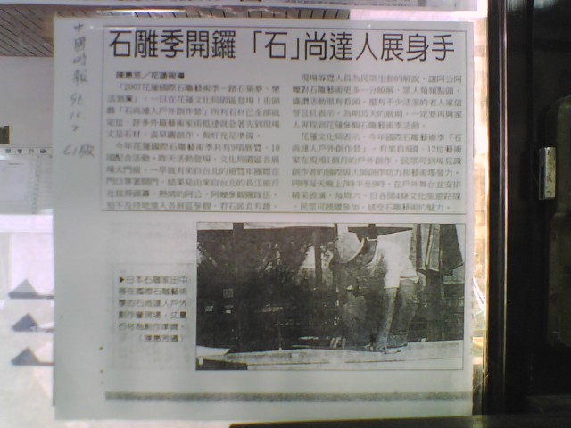 私は午前中の作業は見送って、張さんの車で林さんと3人で街へ出て、金物店を回って必要な道具を物色して購入しました。事務局で道具屋さんを通じて買うと、同じものが市内の一般の店の6,7倍もします。どうやらシンポジウムを搾取の場と考えている手合いがいるようです。夕食が弁当であったり、石が非常に質の悪いものだったり・・・・作家へまわすべきものを自分の懐へ取り込んでいる輩がいることが次第に明らかになってきました。