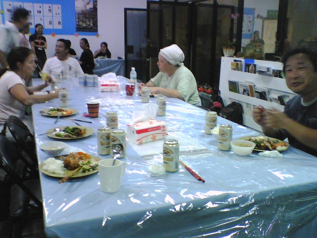 夕食時に、”今日は石がなくて仕事ができず、明日は台風で仕事ができない、私はいつ仕事をすればいいのだ!”と言う私の英語での言い回しがわかりやすかったのか、台湾の若い2人の作家が腹を抱えて笑いました。