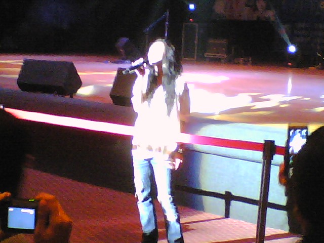 携帯ではスポットの当たる明るい部分はハレーションを起こして残念ながら、人気歌手の顔は写らず。会場の雰囲気だけでも。