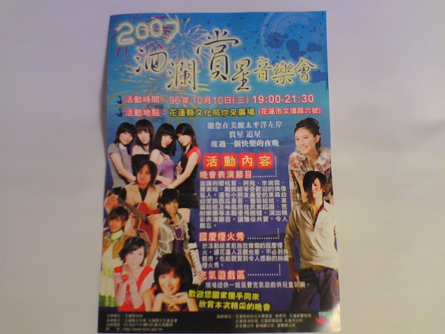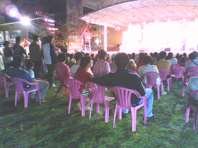夕刻にはぞろぞろと花蓮市民のすべてが集まったのではないかと思えるほどの人群れが隣の広場へ向かっていきますが、広場のステージは雨でなにも行われていませんので、会館のホールで何か記念行事が行われているのかもしれません。