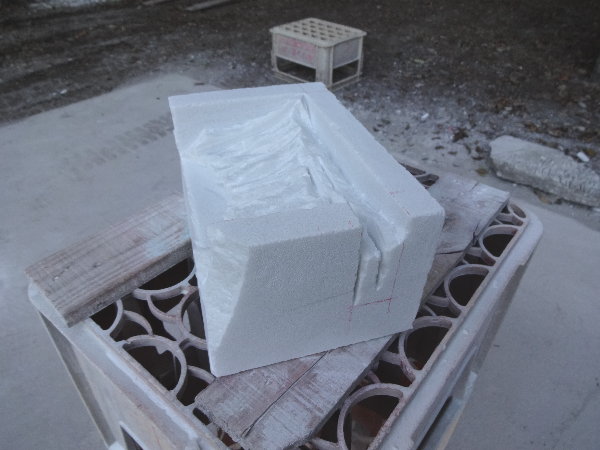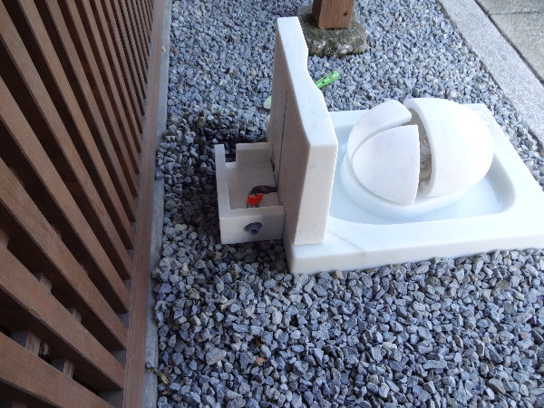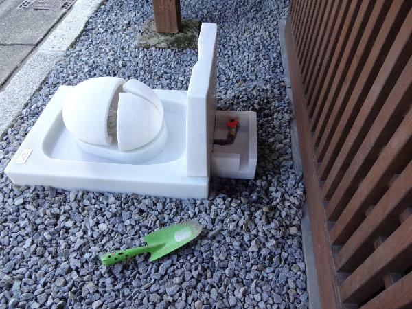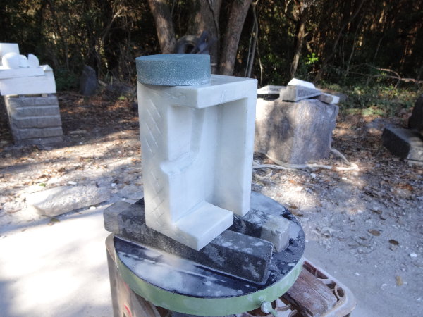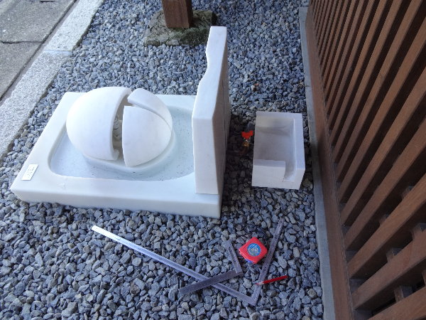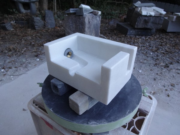 あかりオブジェの排水受けを、中国・青島雪華石で作り直しました。
