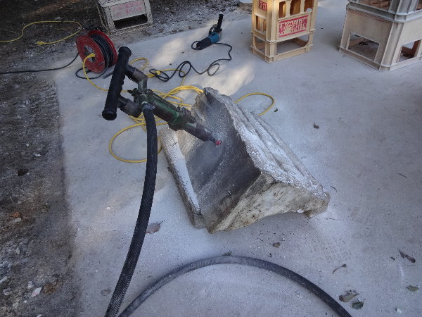 エアーチッパーで均していきますが、エアーチッパーは油が飛ぶので養生テープを貼ったまま作業を進めました。