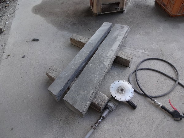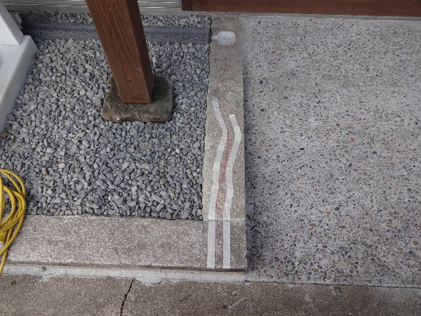 縁石の水路は、これから道路側へ流す水路を加工します。