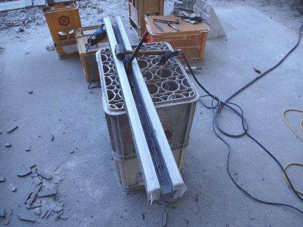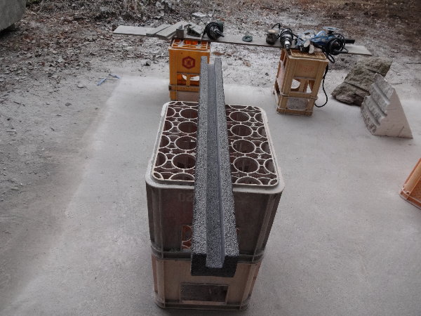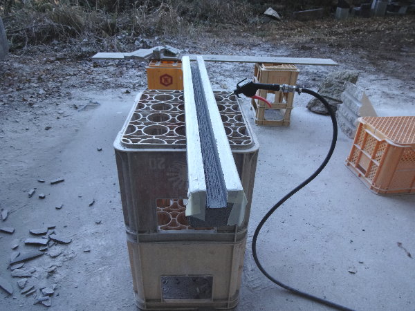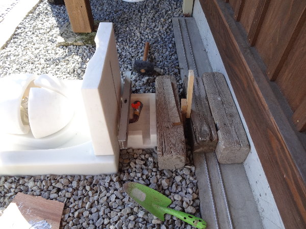☆それで午後は排水受けの磨き仕上げと撥水剤塗布を済ませ、排水受けからの水を流す排水路の制作にかかりました。