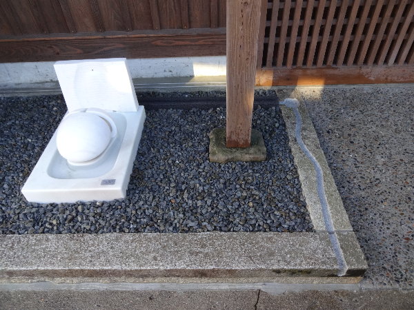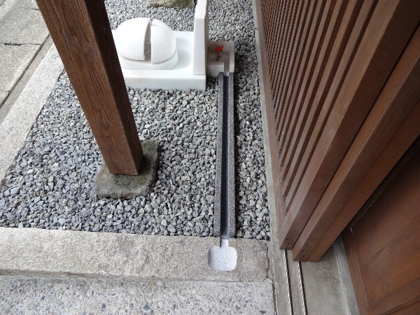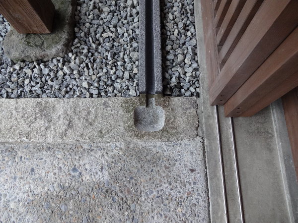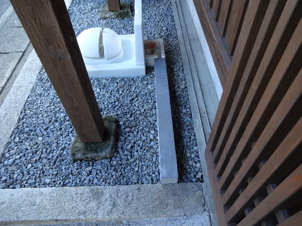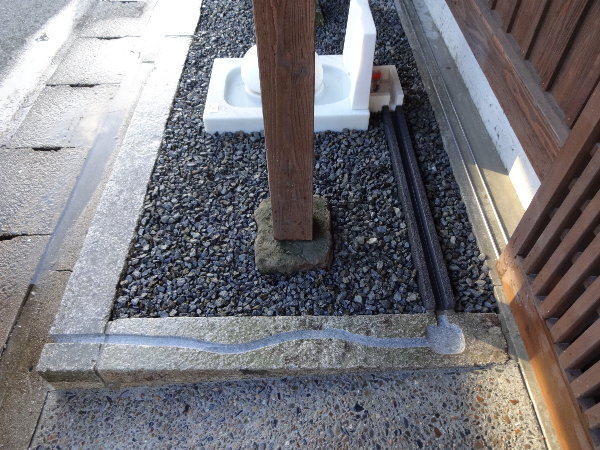 あかりオブジェの排水受けから水を流してみたら、なんとか道路側まで流れてくれました。