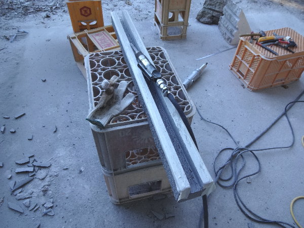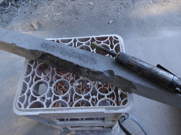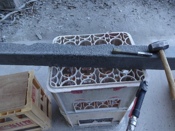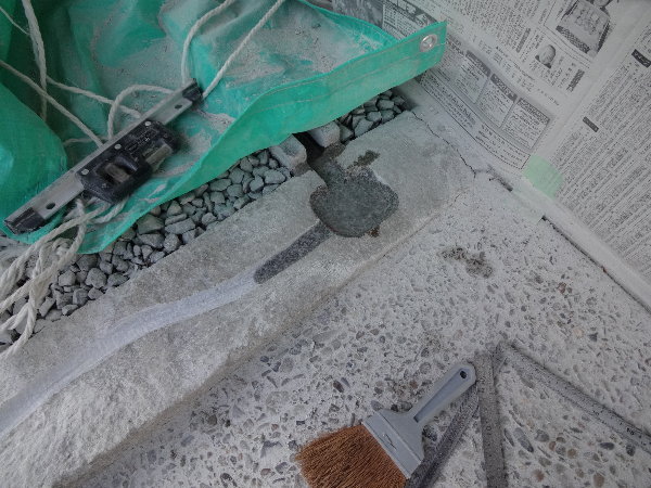 エアーチッパーでは角を欠いてしまいますので、角の周辺は手ビシャン作業で進めます。
