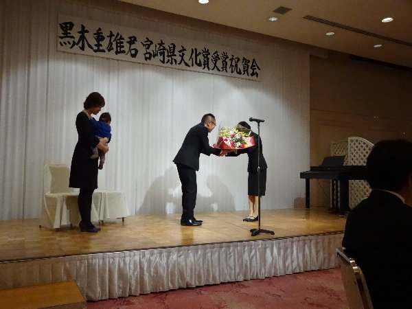 ☆夜に、高鍋高校美術部の後輩である黒木重雄君(絵画・西南学院大学教授)の宮崎県文化賞受賞祝賀会が催されました。