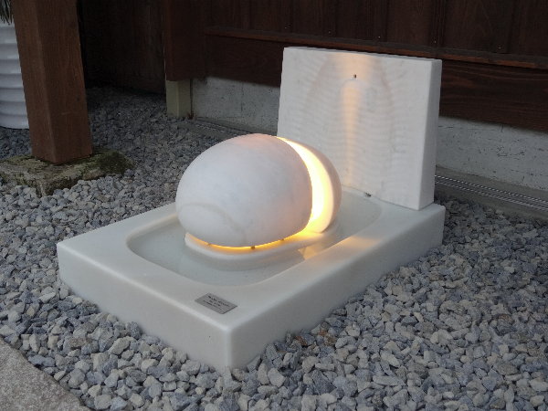 材質 あかり本体・水壁 中国・青島雪華石(大理石) 台座 アメリカ・リンカーンホワイト(大理石)