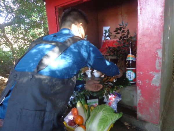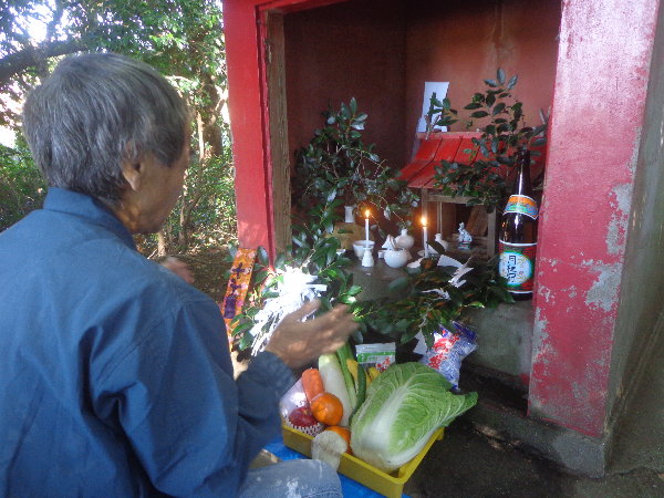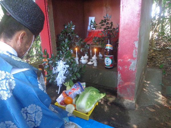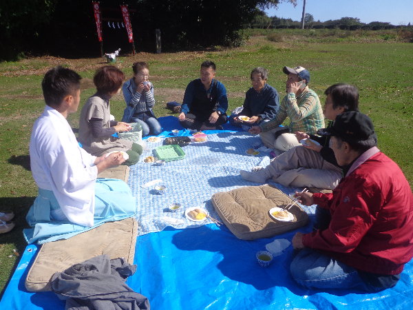 ぽかぽかな陽射しの中で、お稲荷さんをいただき、簡単な直会(なおらい)とします。