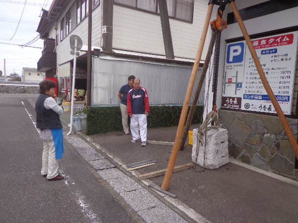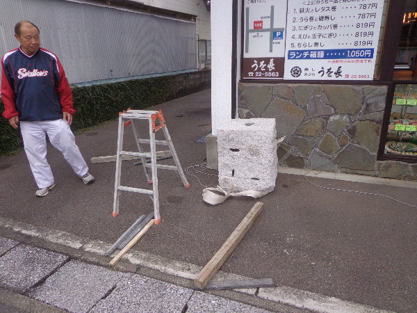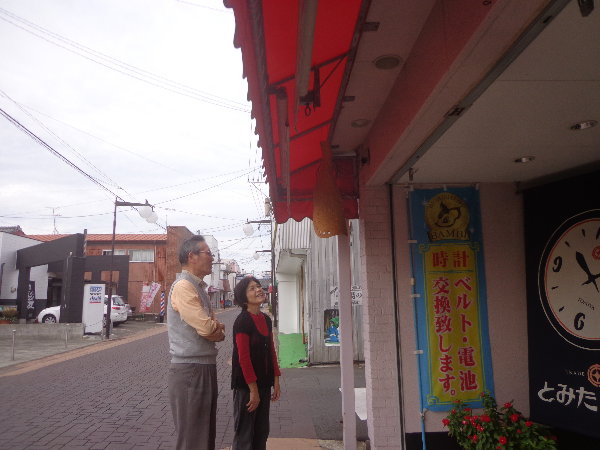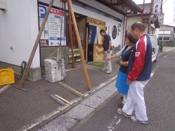昨日設置した福岡生花店のすぐお隣なので、福岡さんも立ち会っての設置となりました。