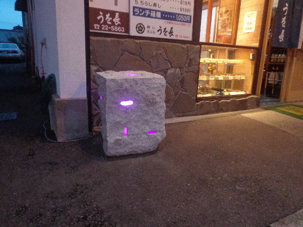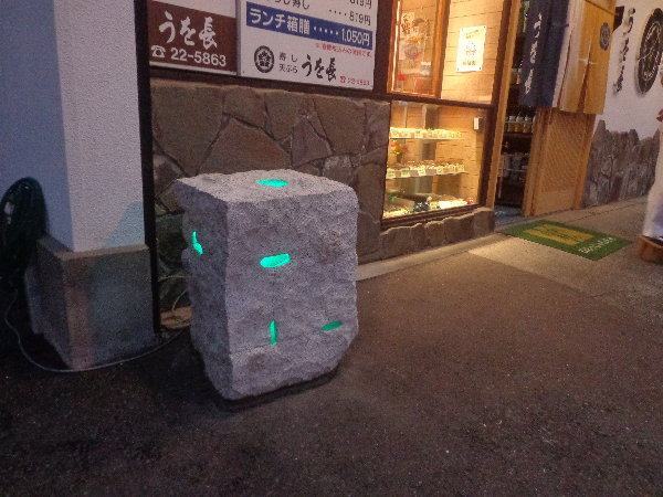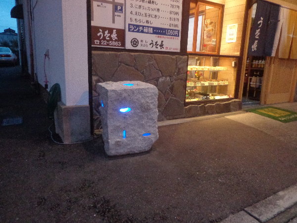 ☆引き続いて、小林照尚氏の制作したあかりオブジェを”うを長寿司”店さんへ設置しました。
