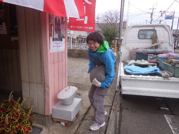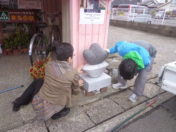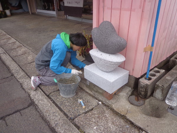 杉尾さんにとって生まれて初めて作った石の作品が公共空間に設置されるので、自分の手で設置を行ないたかったのです。