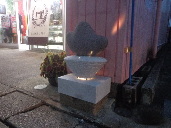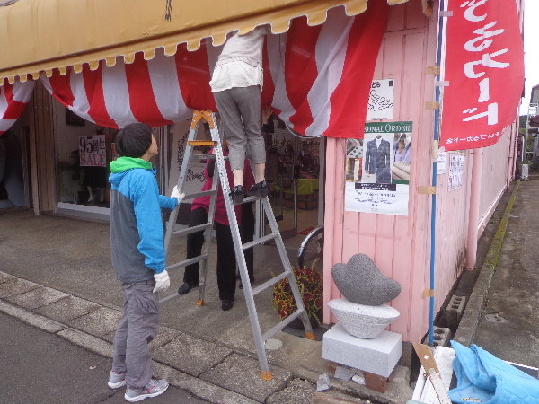 ☆今日はあかりオブジェの最後の作品、杉尾幸さんの制作したオブジェを”衣料の米田”さんへ設置しました。