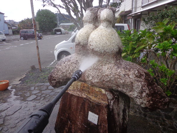 私自身は石像の汚れは作品の風格でもありまったく気にしていなかったのですが、最近になって多方面から汚れが気になって仕方が無いという声が寄せられるようになっていました。