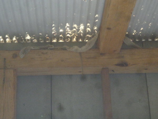 ☆約1ヶ月ぶりにアンジェラスの森へ行くと、倉庫の中の棟に倉庫の主である巨大青大将の抜け殻を見つけました。