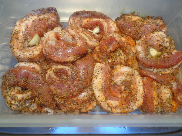 それぞれの肉に、にんにくを差し込んで行くのが秘訣だそうです。