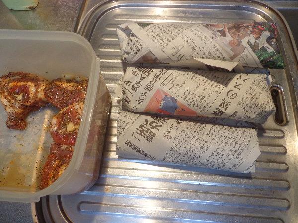 新聞紙はよく脂を吸い取ってくれるのだそうです。