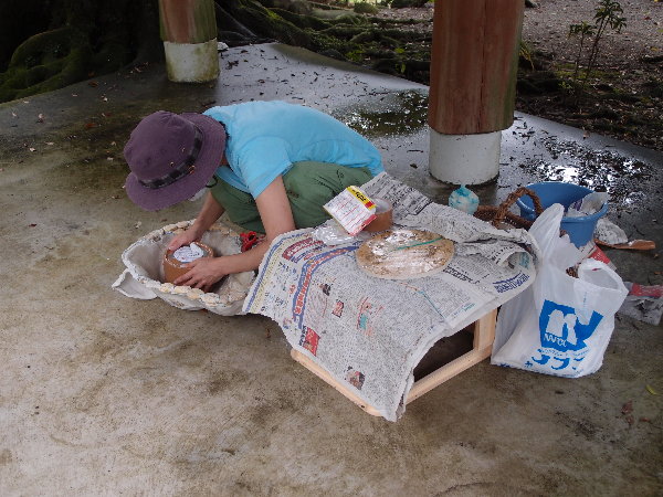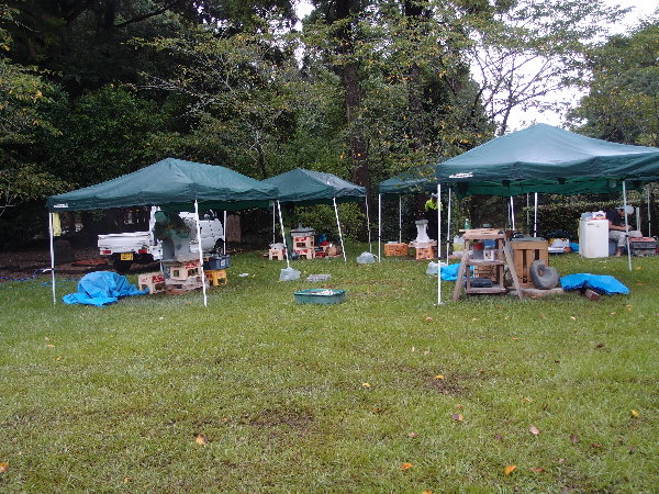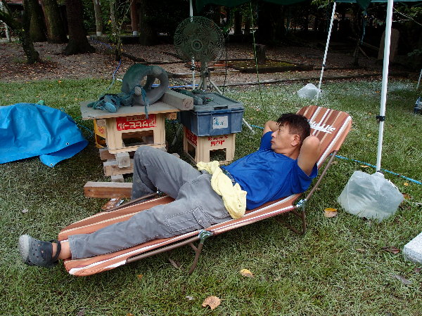 朝のうちは雷雨で、とても寒い作業の開始となりました。
