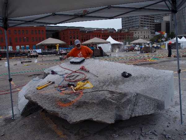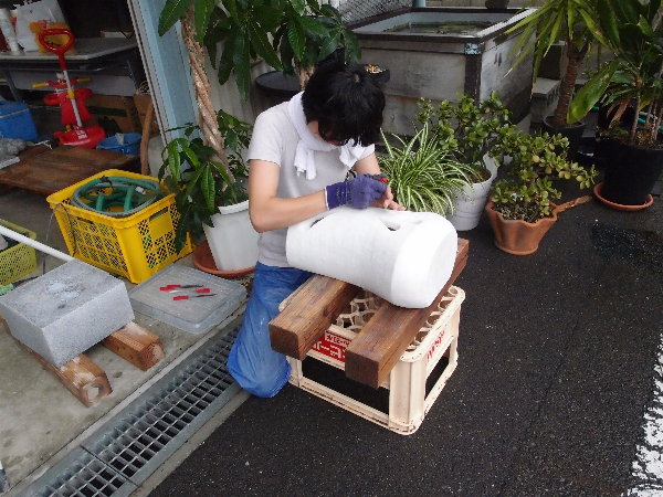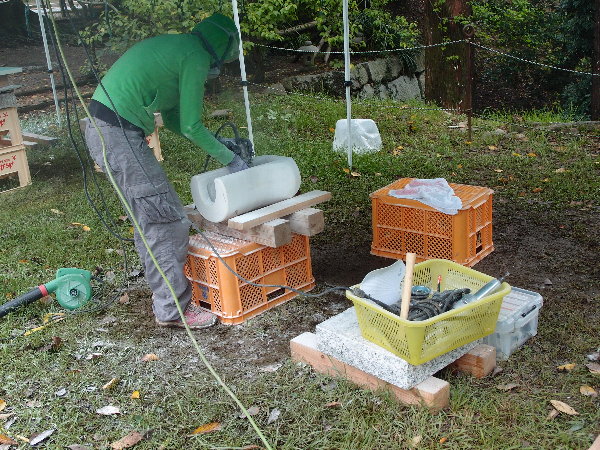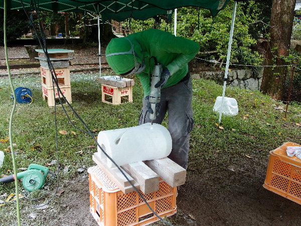 私はルートハンマーで大まかな粗落し作業をしました。