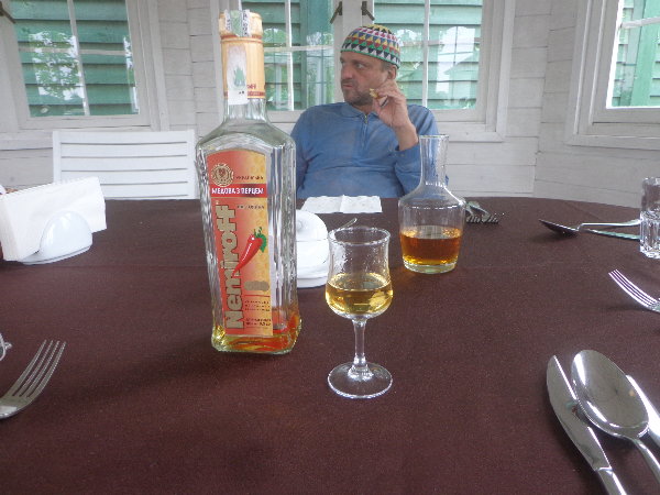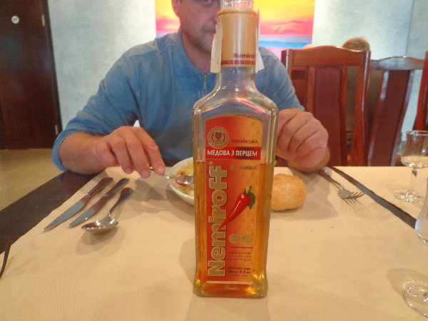 ☆ランチに行くと、ウエイトレスがまず持ってきたのは唐辛子入りウオッカのボトルでした。