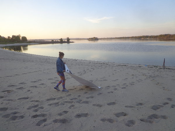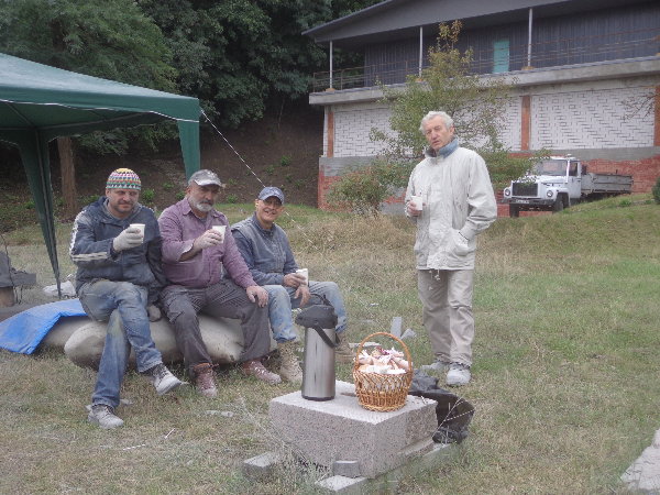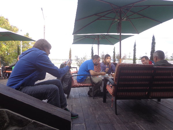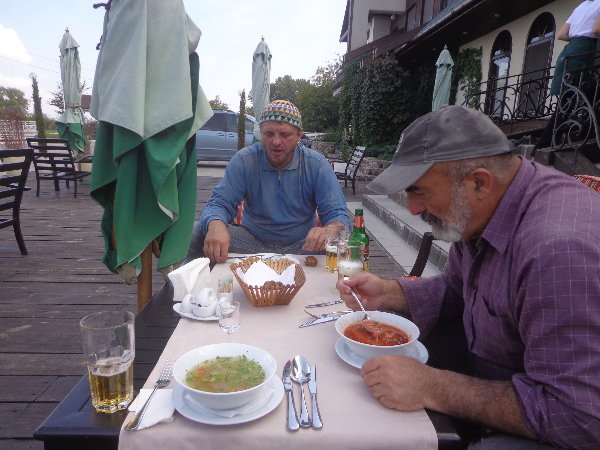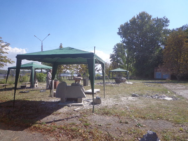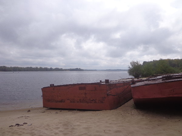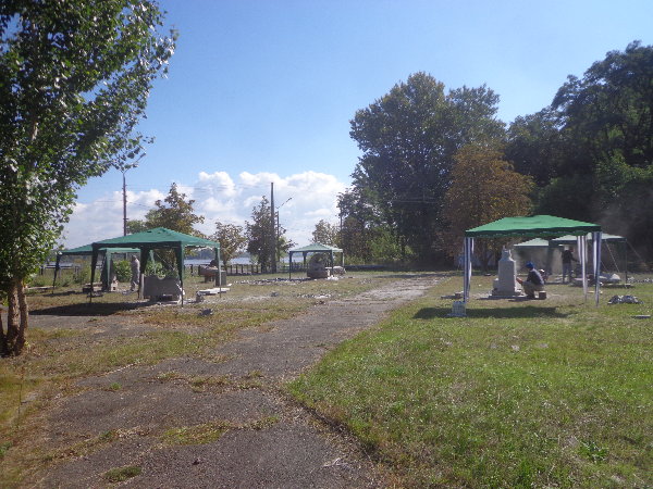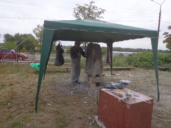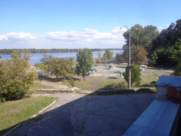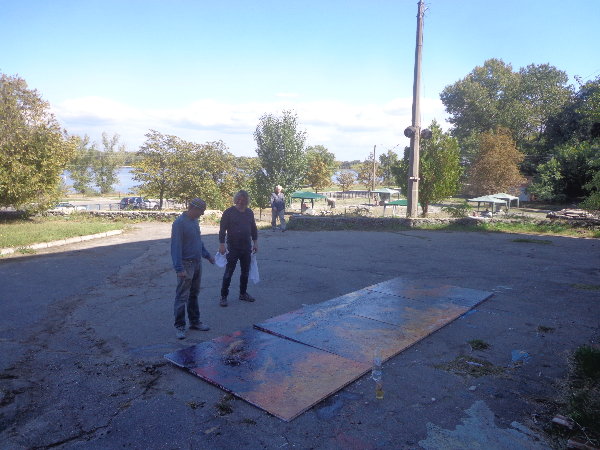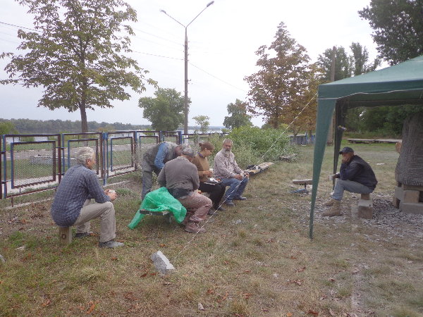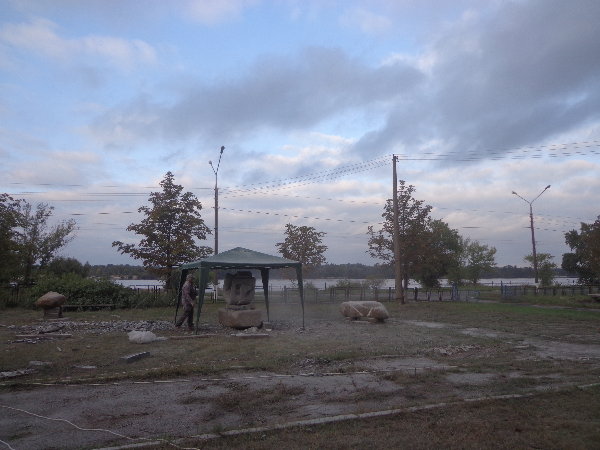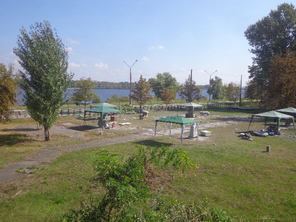 水はダニエプル川からペットボトルに入れてきますが、アレクサンドルがこうするとコンスタントに水が出るよ、とペットボトルの下に小さな穴を開けてくれました。