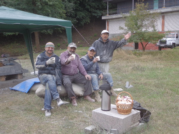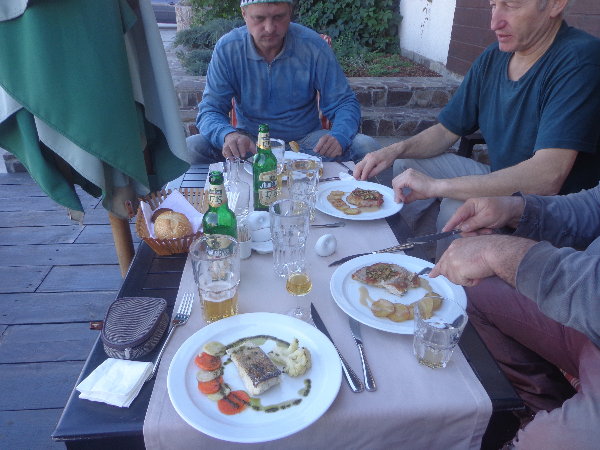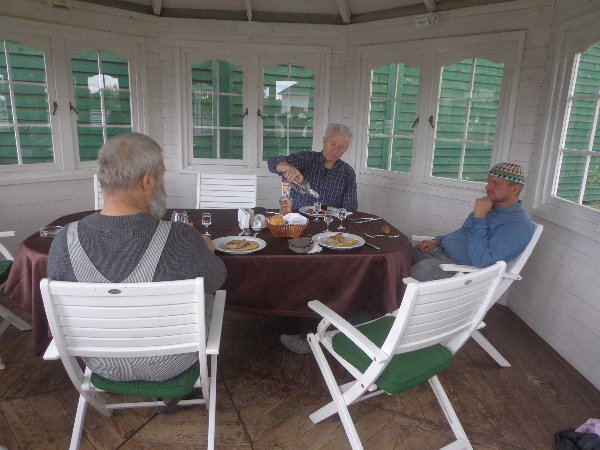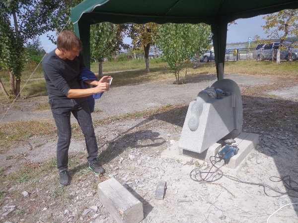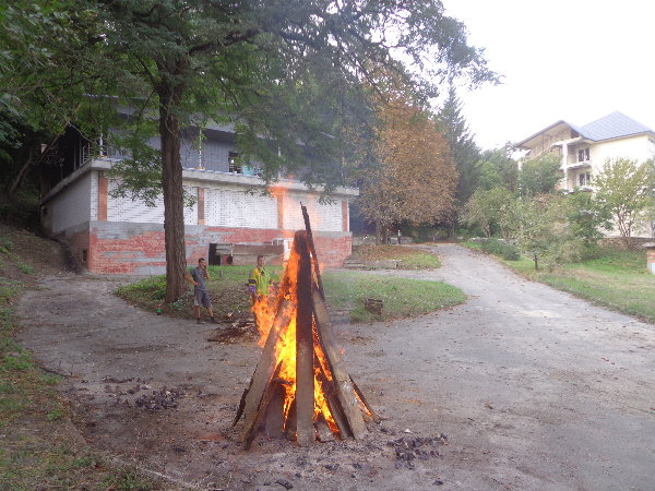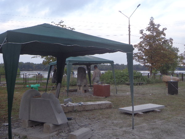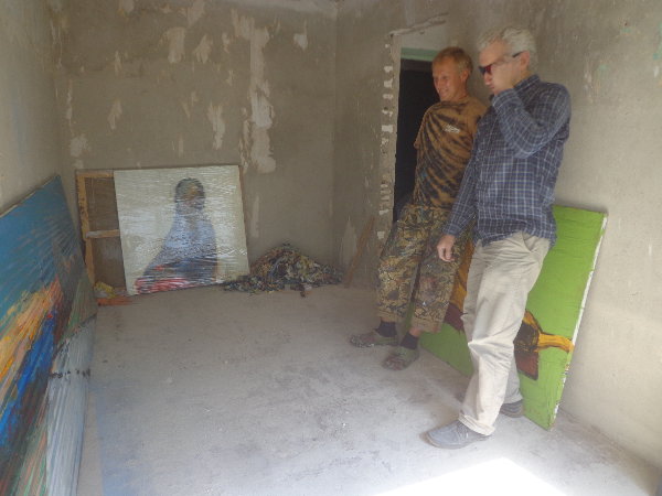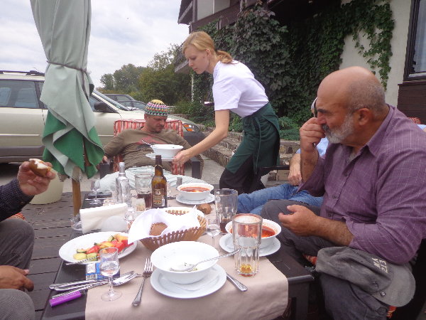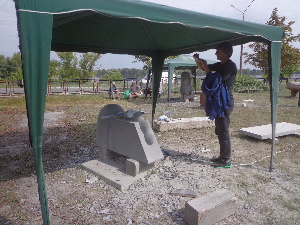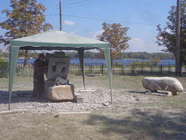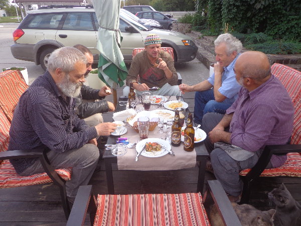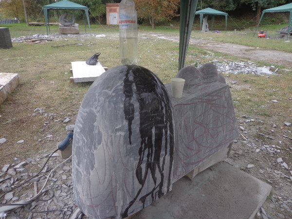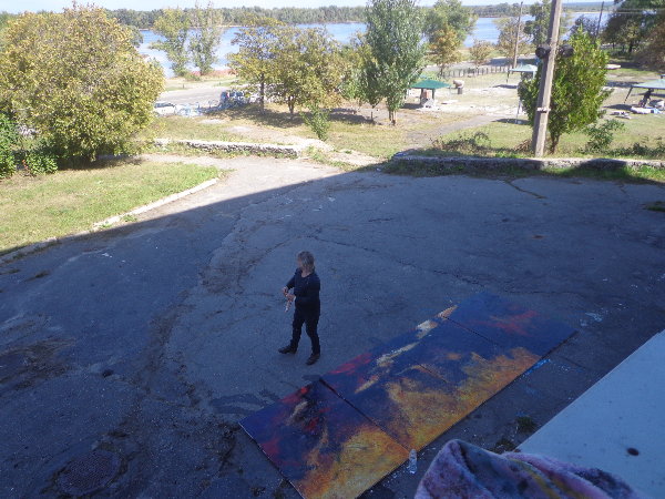 水はダニエプル川からペットボトルに入れてきますが、アレクサンドルがこうするとコンスタントに水が出るよ、とペットボトルの下に小さな穴を開けてくれました。