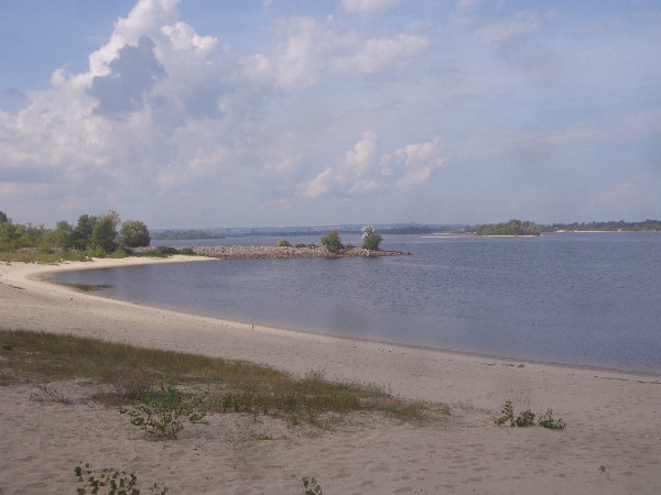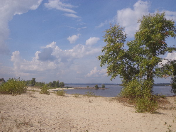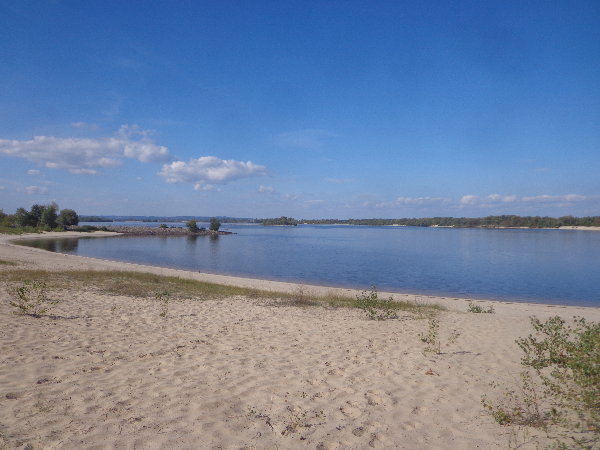 日本と違ってこちらの川は長いので、川岸は日本の海岸のように砂浜になっています。