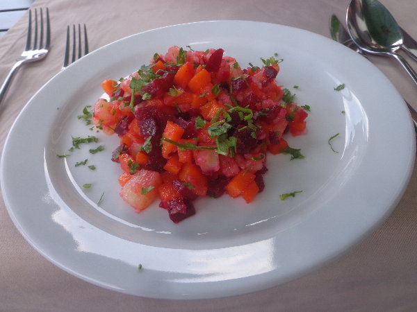 覚悟してウオッカをまた一気飲みして、サラをいただきました。
