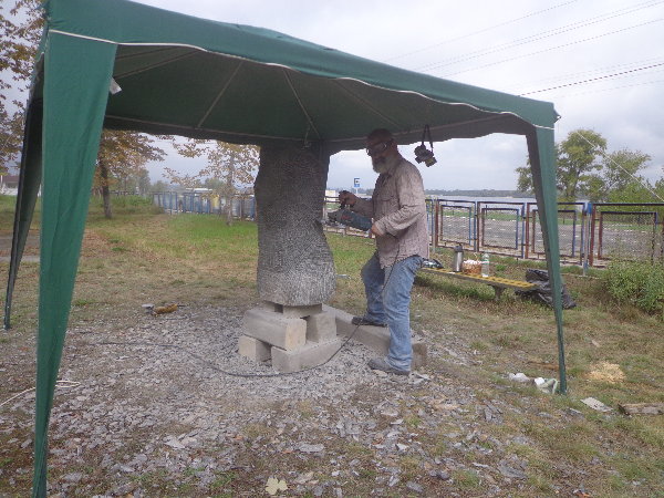 夕刻に激しい雷雨となり、非常に暗くなって研磨面が見えなくなってしまいました。