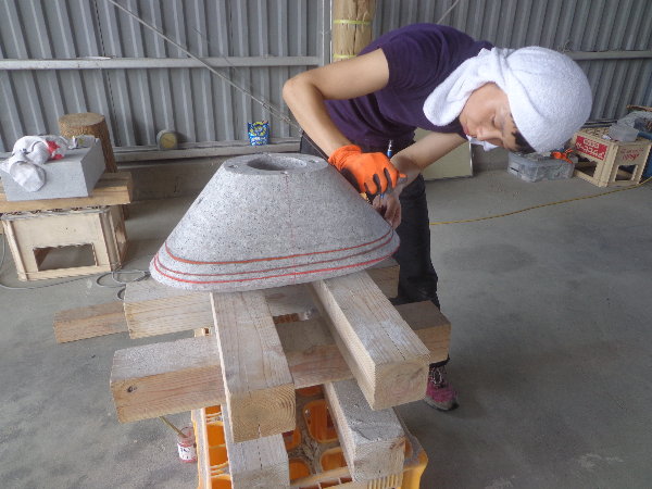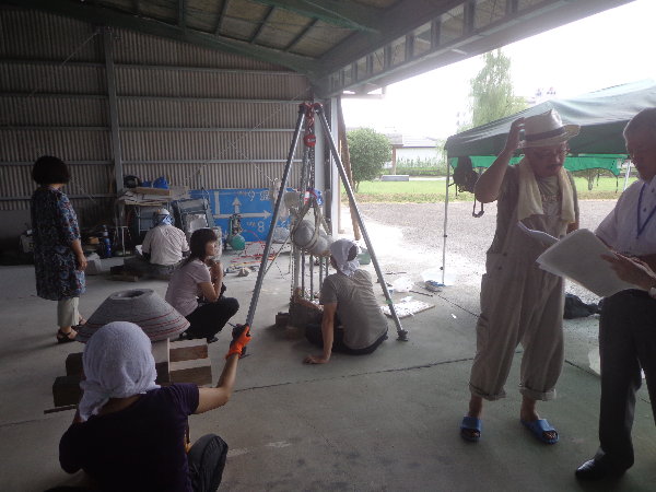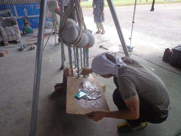 その猛暑の中で、各作家はオブジェの仕上げに励みました。