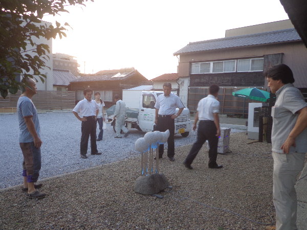 午後後半から完成したオブジェの町屋本店への設置が始まりました。