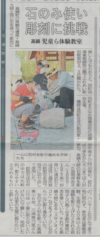 ☆7日の宮日新聞に石彫教室の記事が掲載されましたので、UPします。