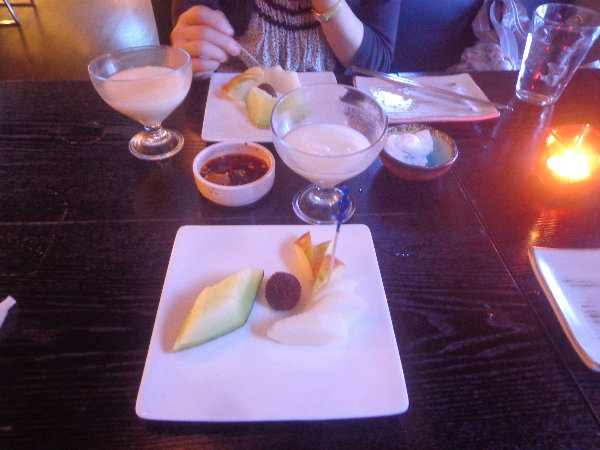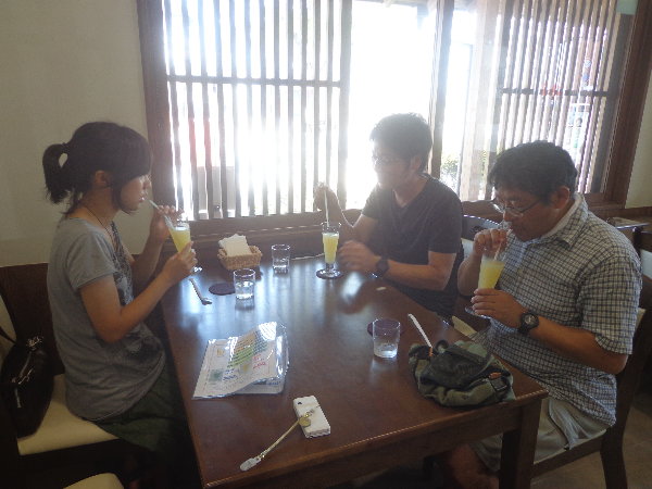 残る作家の皆さんで、設置店舗やお世話になった方々への御礼回りをされ、お昼前に津久見屋果実店のパーラーでジュースをいただきました。