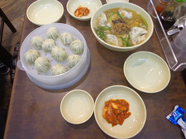 左が蒸饅頭の明洞餃子、右が韓国うどんのカルグクス。