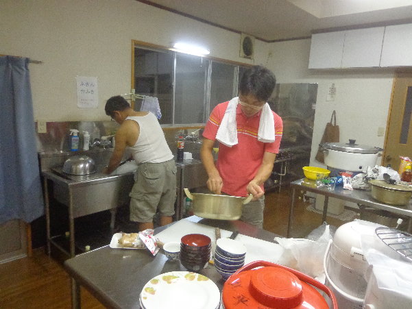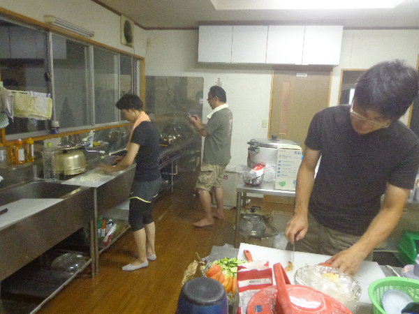 昨夜は買出しをして、男性陣が夕食の準備をしました。