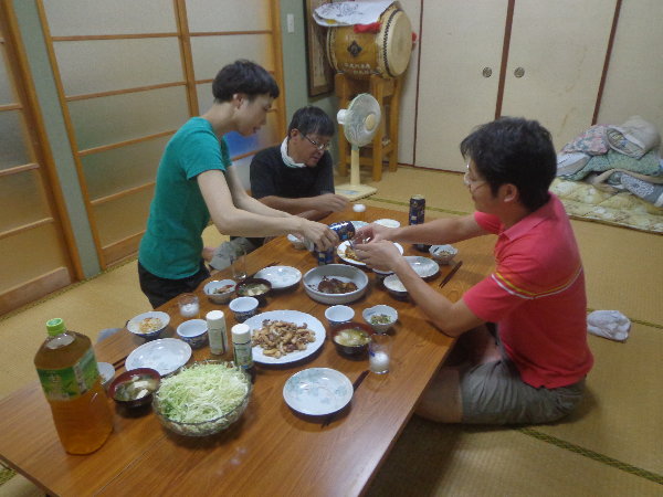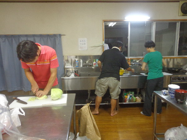 朝食と夕食は基本的に公民館で自炊し、皆さんで食事をします。