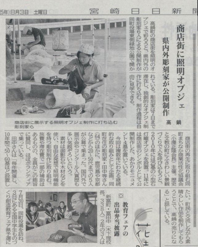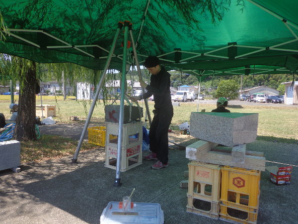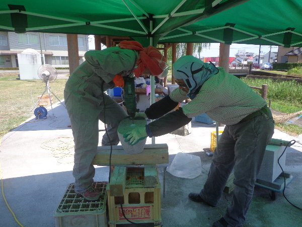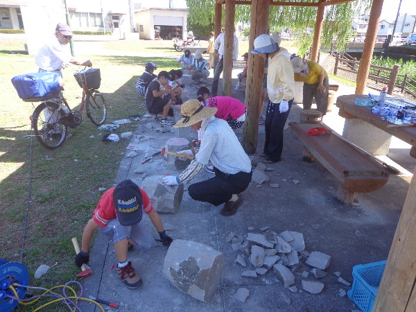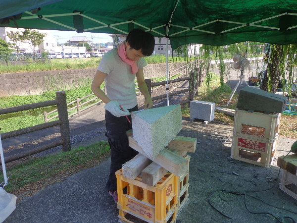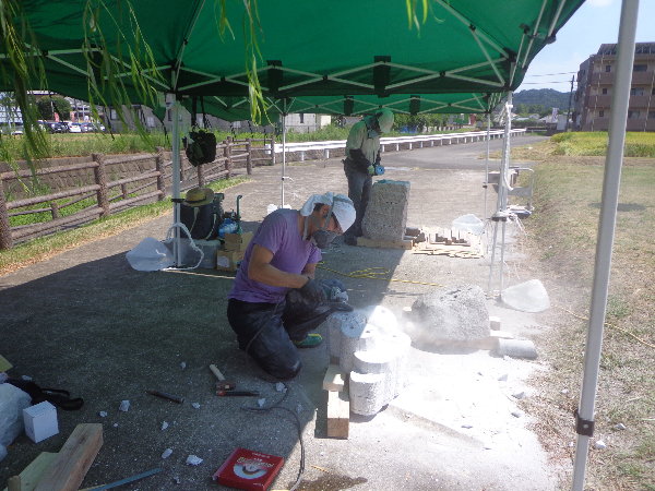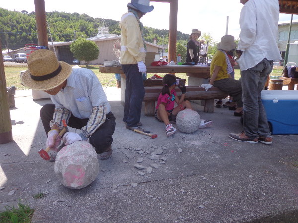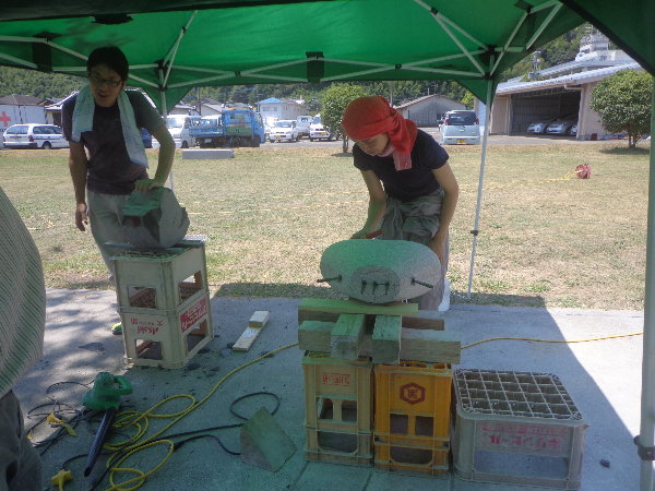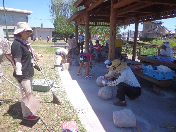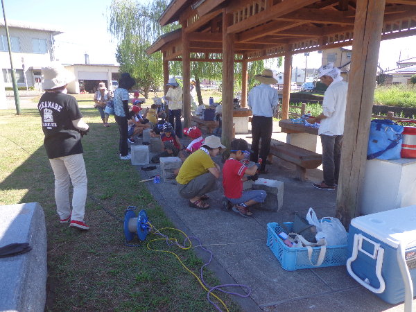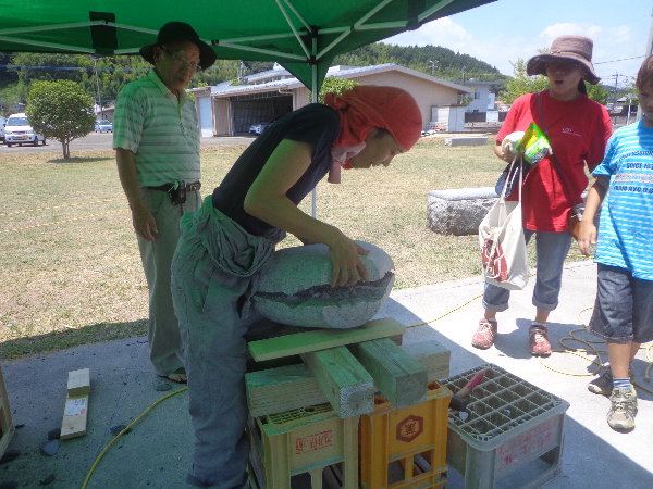 猛暑が続く中、昨日はあかりオブジェ公開制作の併催行事、石彫教室を開きました。