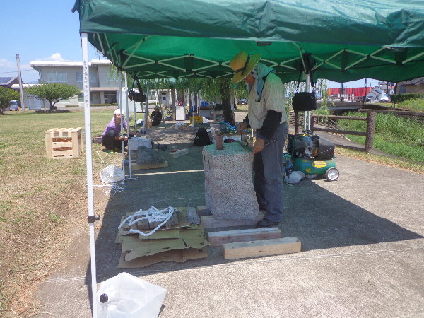 商工会議所の小田君も、とうとう自分でも彫りたくなってしまったほどの、石彫教室の魅了でした。