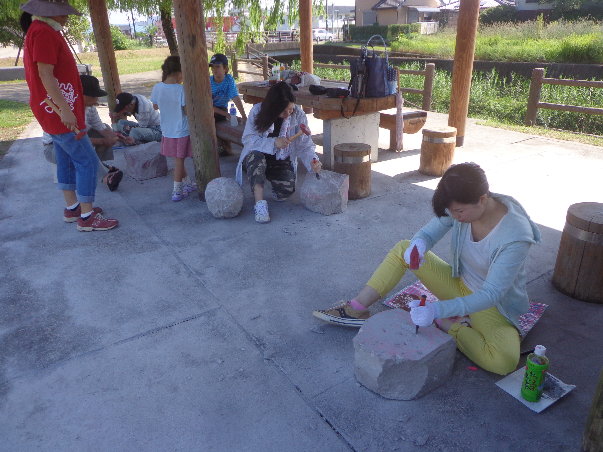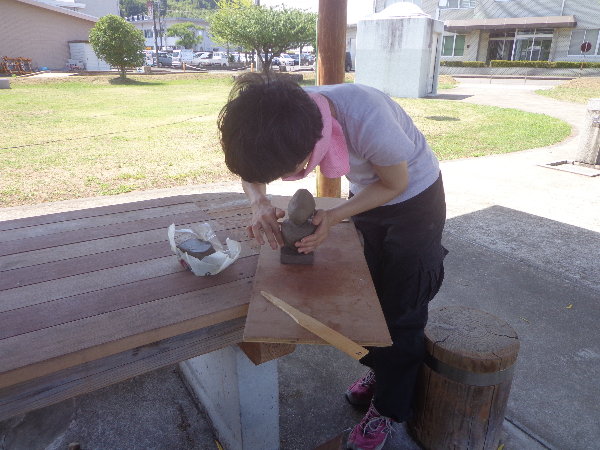 当初は申し込みが少なかったのですが、当日の申し込みがかなりあって、多めに準備していた石が足らずに、あわててアンジェラスの森へ取りに行く一幕もあり、盛り上がった充実の石彫教室となりました。