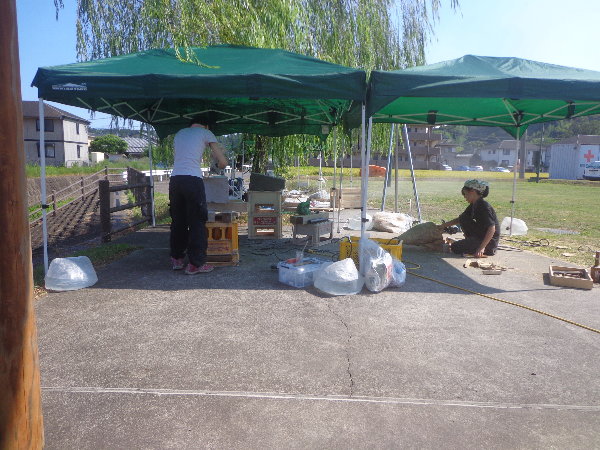 ☆午前に制作会場にテントを設営し、私も冷蔵庫や枕材などを運び入れました。