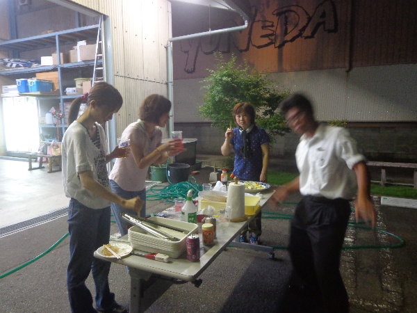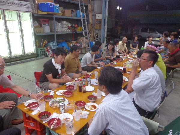 ☆夜は小澤・まちなか活性化協議会会長の倉庫で歓迎会が開催されました。