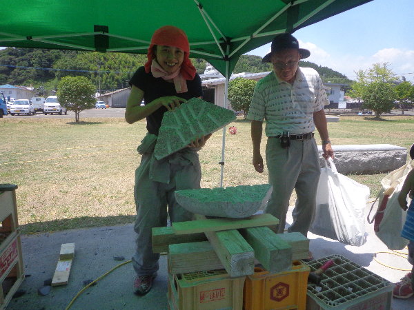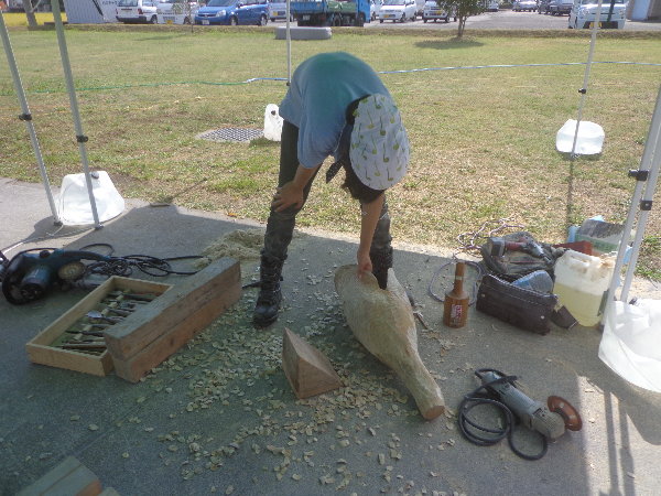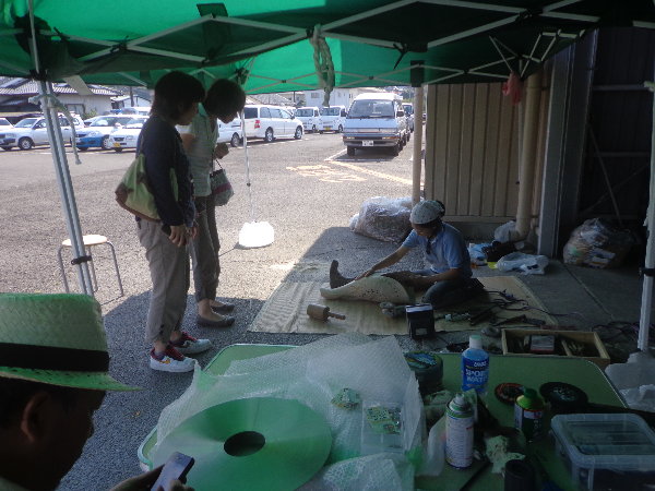また、この素材の石と石彫道具を無償で提供していただいた、元・日向現代彫刻展実行委員会の事務局の曽我部さんも駆けつけていただき、子供たちの指導にあたっていただきました。