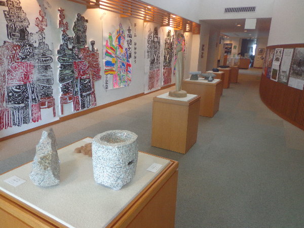 石彫教室の作品は、こうして町屋本店でしばらく展示します。