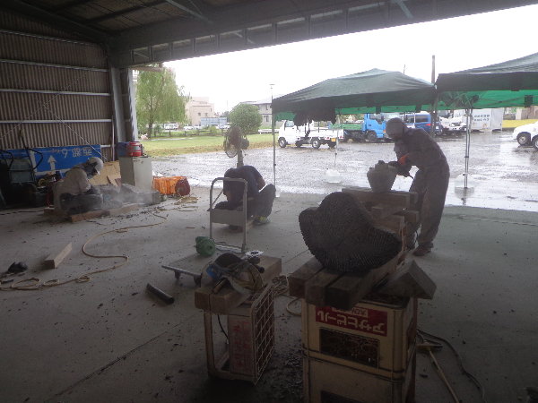 この猛烈な熱暑のなか、昨日はあかりオブジェ公開制作の初日を迎えました。