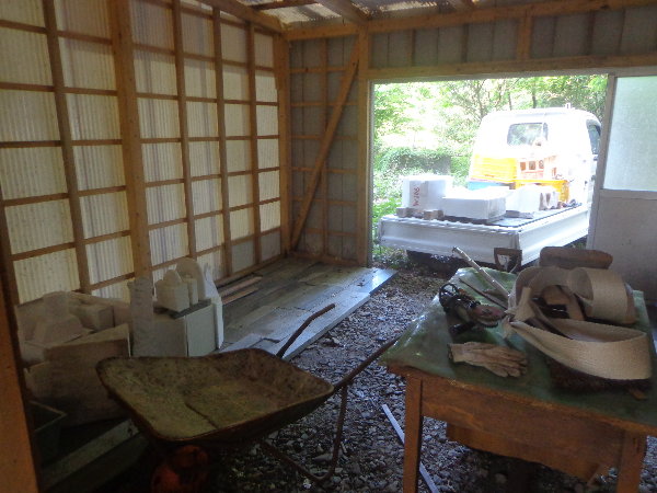 石を降ろした後、倉庫の中の大事な道具を軽トラに積んで、自宅に持ち帰りました。