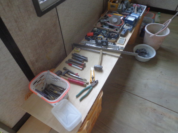 これらの工具に加えて、金曜日にすべての道具を運んできて、日曜日の午後にこの机に並べたばかりだったのです。