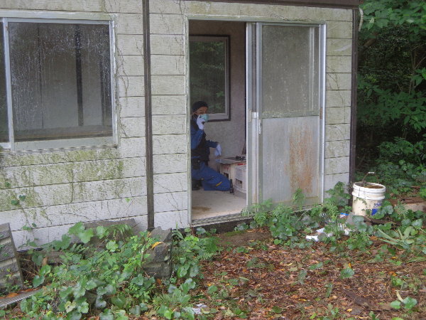 ひょっとして雑木林の中に投げ捨てられているのではないか、と探しながら、ふとプレハブ倉庫を見ると・・・無い!