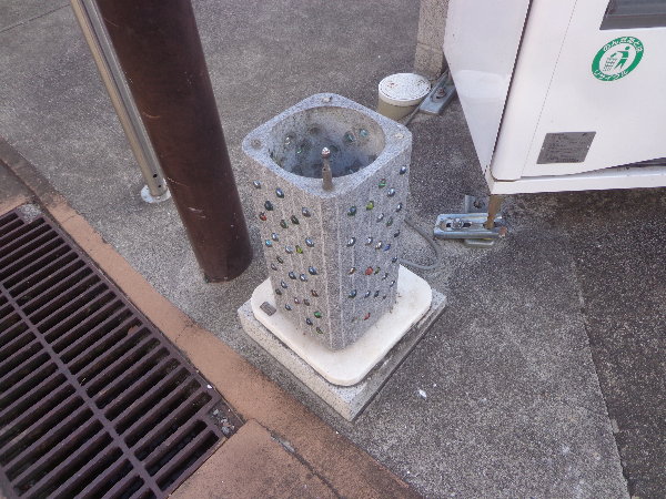 昨年暮れに上部の分厚いガラス板を叩き割られたオブジェが今度は倒されて、ガラスが完全に粉々になってしまいました。